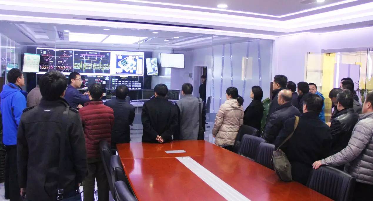 (与会人员参观xc体育公司智能电力维护系统集控中心)